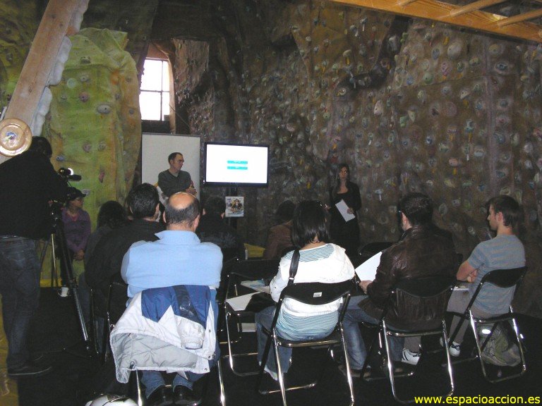 Técnicos de Espacio Acción realizaron una demostración real de escalada para los medios asistentes.