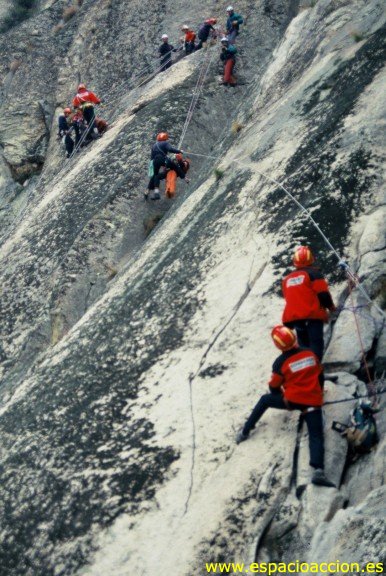 • Algunos momentos del curso Rescate en Montaña (1), diseñado para unidades como el GERA (Grupo Especial de Rescate en Altura).